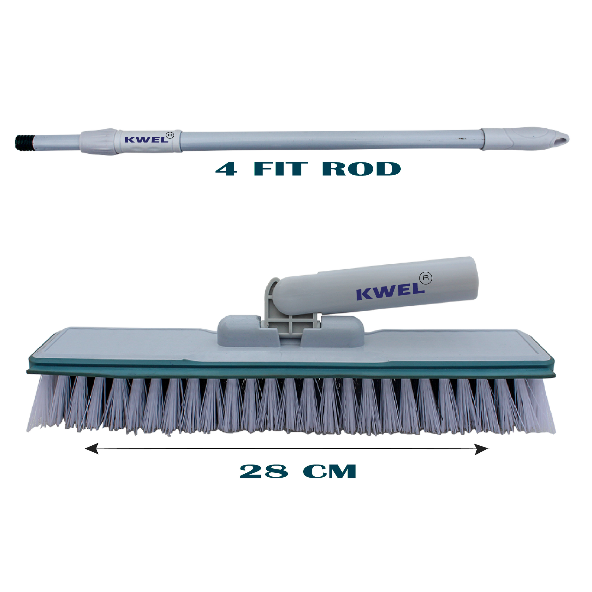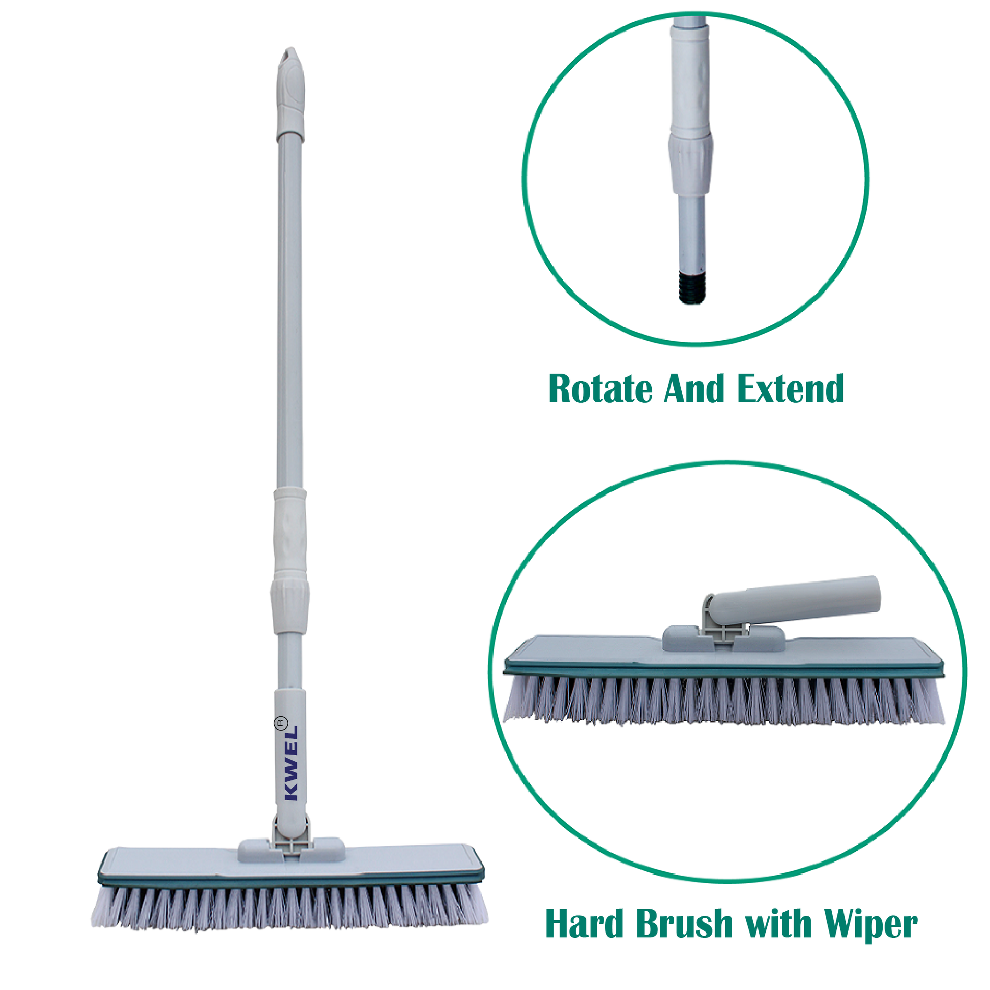 KWEL 2 in 1 Floor Cleaning Brush With Wiper & 4 fit Stick (Multicolor) Pack of 1