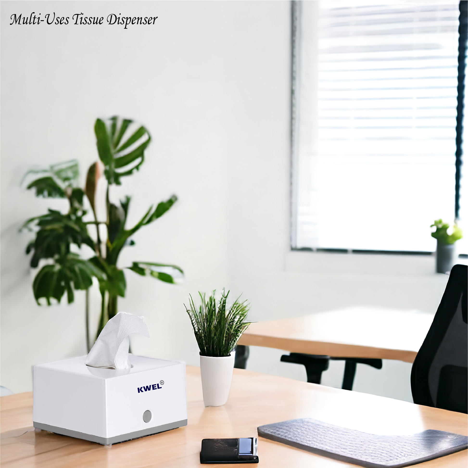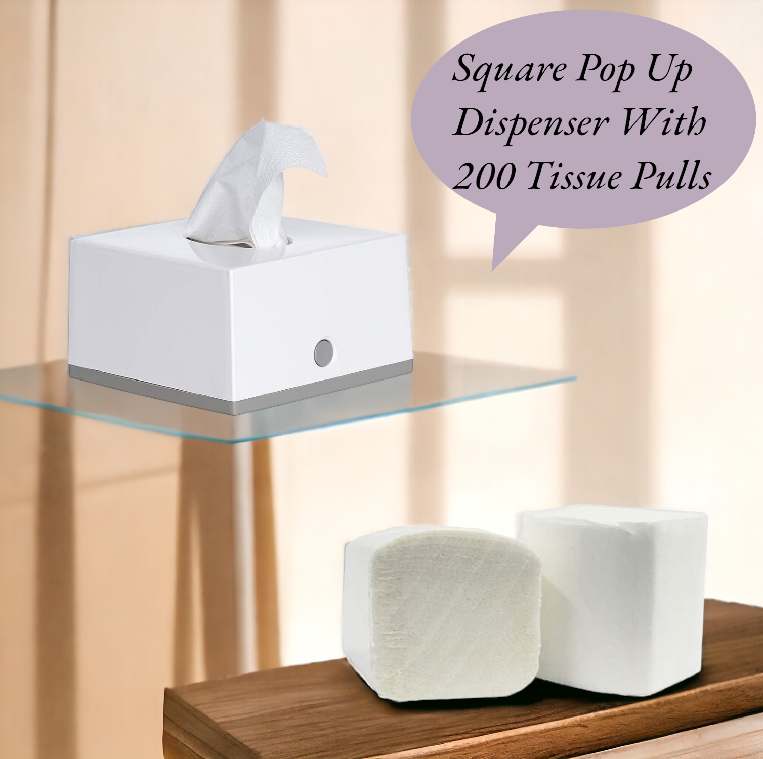 KWEL Square Top Facial Tissue Dispenser with 2 Tissue Refill (White)